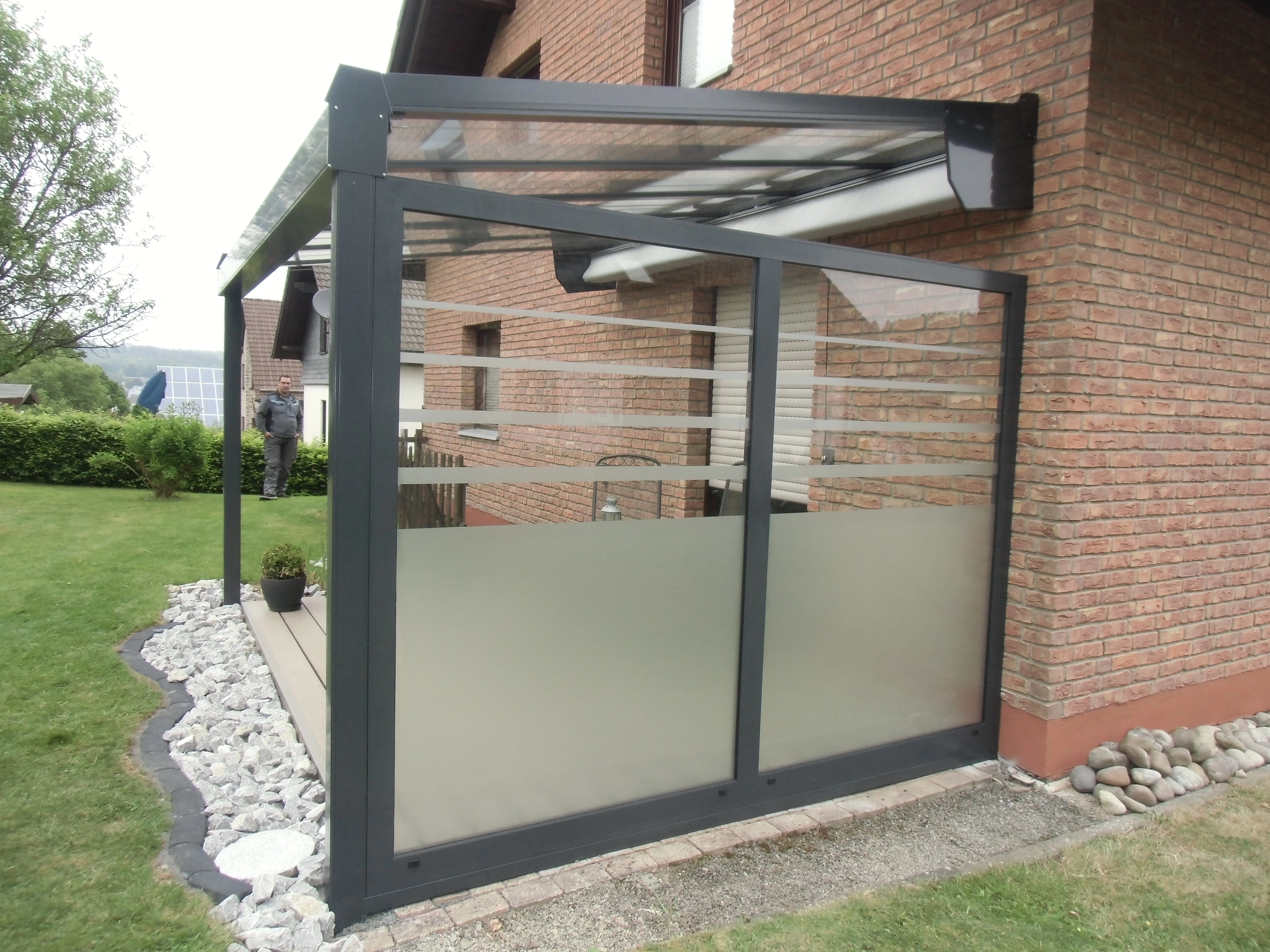 Feststehende Verglasungen sind die nur eine Art Ihre Überdachung vor Wettereinflüssen zu schützen. Dabei lassen sich verschiedene verschiedensten Füllungen wie Glas, Kunststoff oder Blechfüllungen einsetzen um es als Wetter- und Sichtschutz zu nutzen. Auch eine Kombination mit Dreh-Kipp-Flügeln oder Kippfenster zum Lüften ist ohne Probleme realisierbar.