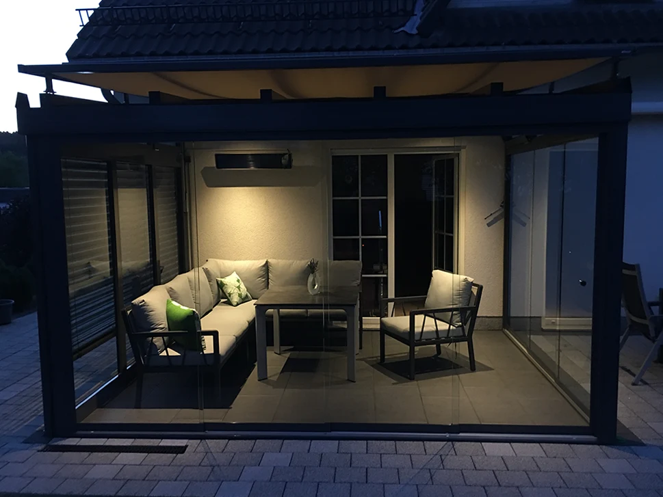 Die Beleuchtung verschafft Ihnen die passende Atmosphäre zu einem gemütlichen Abend unter Ihrer Terrassenüberdachung bis hin zur notwendigen Beleuchtung für Hauseingänge oder Carport z. B. für eine „Coming Home Beleuchtung“ in Verbindung mit einem Bewegungsmelder.